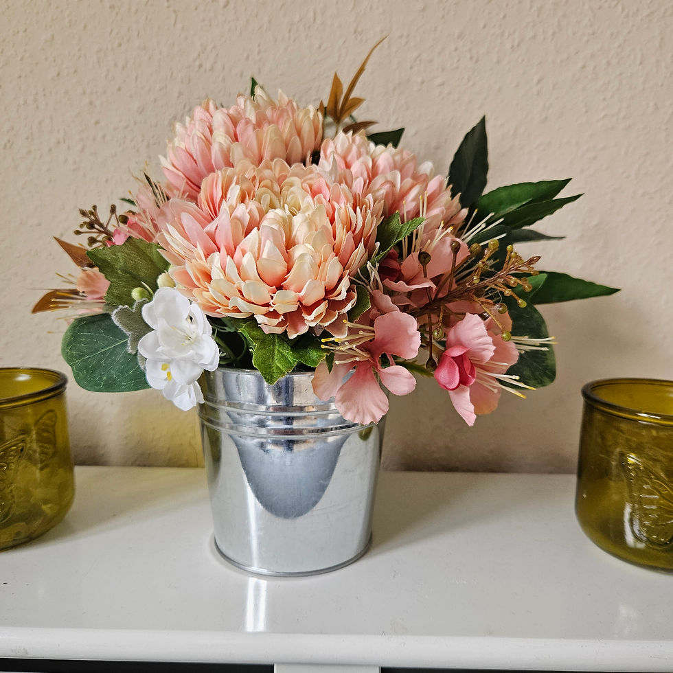 Introducing Mara, the perfect little pot of spring for your home! This handmade floral design includes cheerful yellow daffodils, pretty pink daisies, and delicate baby's breath, all nestled in a charming china blue pot. Measuring 10cm tall and approximately 22cm tall and 16cm wide overall, Mara is a delightful pop of color and botanical beauty for any room. Plus, with free UK P+P, she's ready to brighten up your space with no extra cost. Order Mara - the Spring Pot today and bring the beauty of spring indoors!